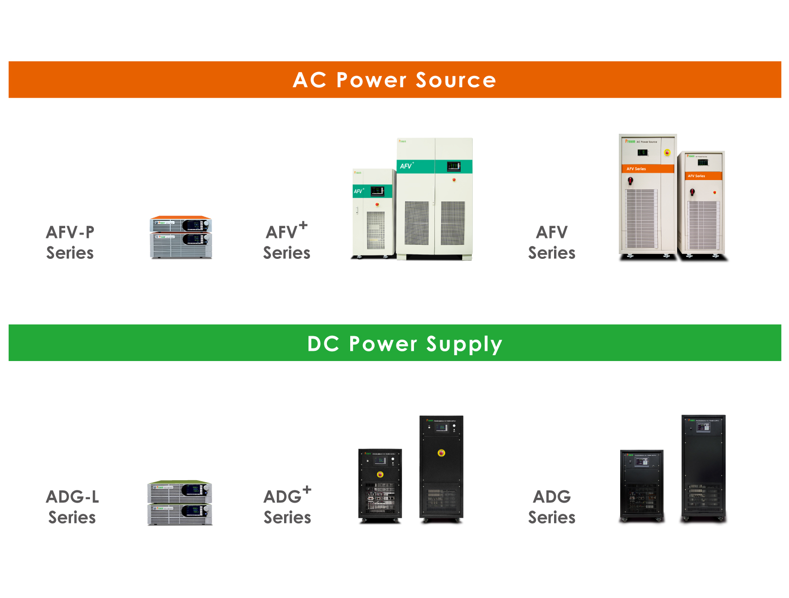 Preen Program支援Preen多個熱門產品,使用者可針對交流電源系列的AFV-P可編程交流電源供應器、AFV+大功率可編程交流電源、AFV大功率可編程交流電源與直流電源系列的ADG-L可編程直流電源、ADG+大功率可編程直流電源、ADG-P大功率可編程直流電源進行遠程監控。此軟件提供許多實用且方便的功能,以利客戶進行多樣化的電源測試: