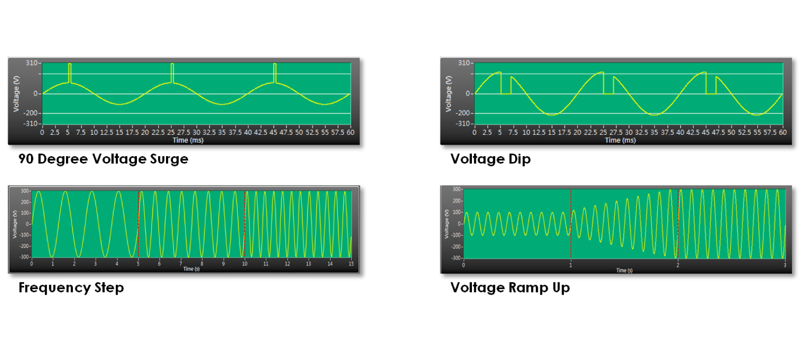交流系列:可精準地設置電壓、頻率、電流、時間等多項參數,實現擾動、漸變與步階的功能。另能針對需求設定瞬變功能,達到模擬電源干擾狀況與法規認證的項目