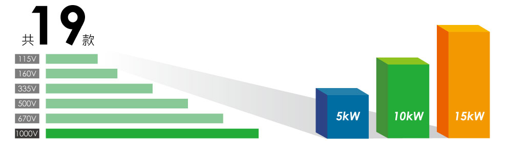 功率輸出范圍:5KW / 10KW / 15KW。
