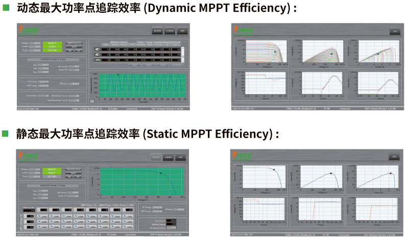 ADG+ 系列可以通過選配IV曲線遠程控制軟件,實現SAS 模式以及符EN50530法規測試動態最大功率點追蹤效率(Dynamic MPPT Efficiency) 和靜態最大功率點追蹤效率(Static MPPT Efficiency) 的相關參數設置和輸出波形的顯示。